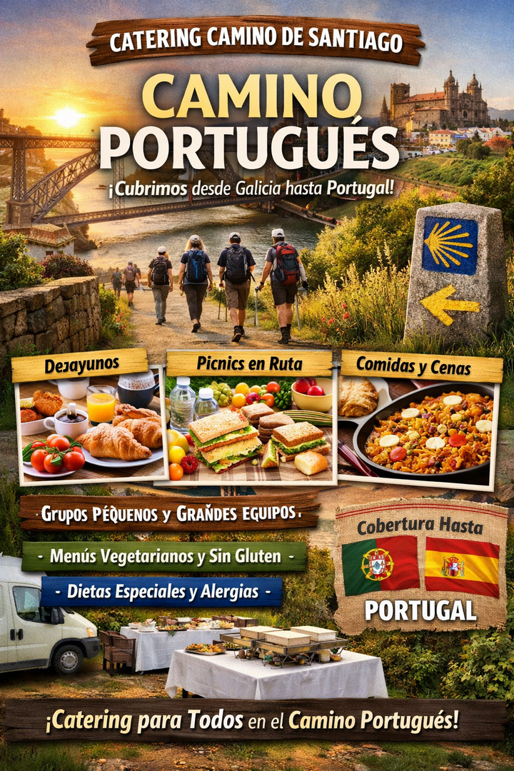 Trabajamos en las principales etapas desde Tui hasta Santiago, así como en el Camino Portugués por la Costa, adaptando cada menú al esfuerzo físico diario. Si buscas un catering para el Camino Portugués que combine calidad, organización y experiencia en rutas jacobeas, ponemos a tu disposición un servicio flexible, personalizado y pensado para que solo tengas que preocuparte de caminar.